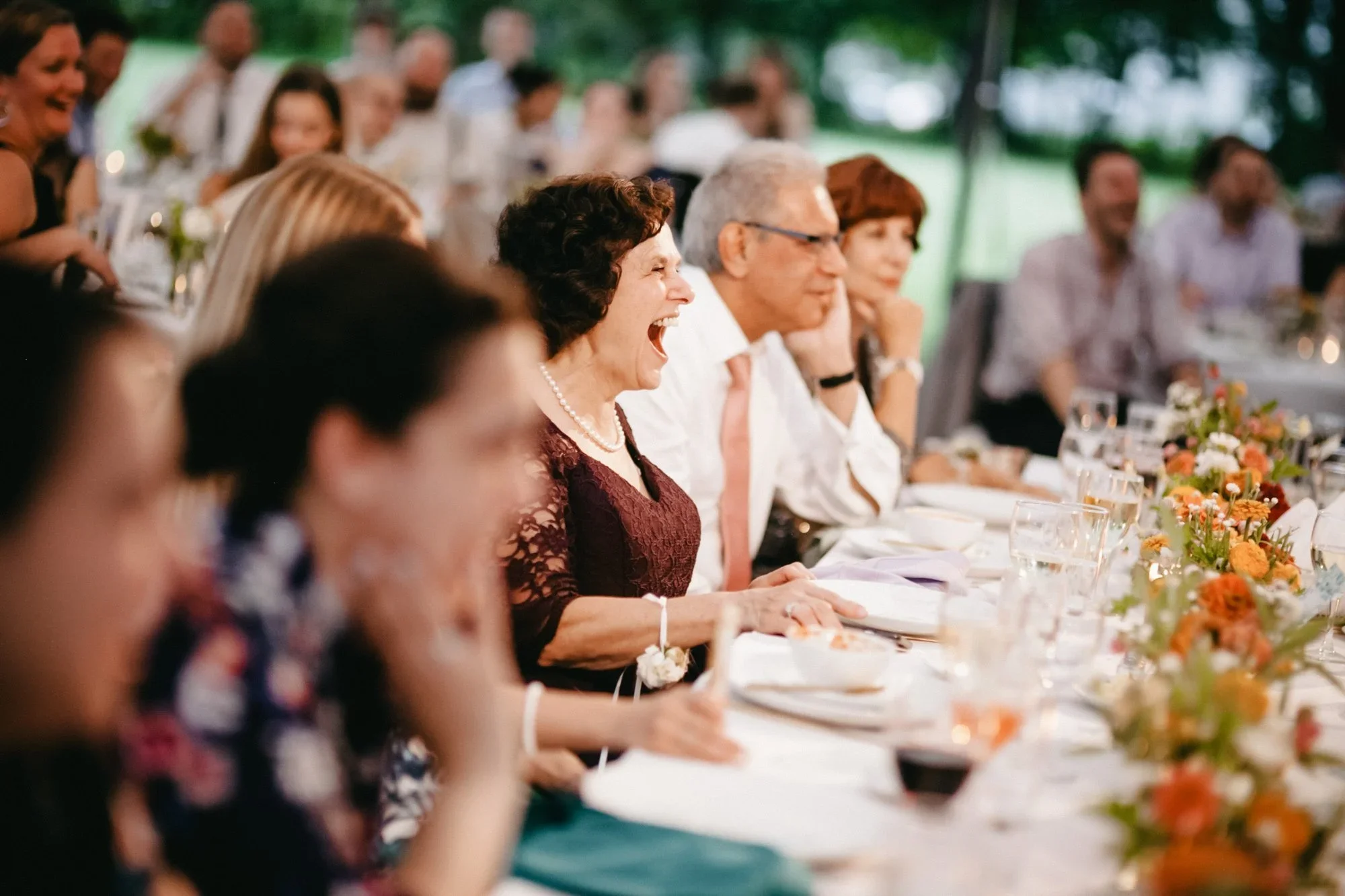 There is another way to do itโhaving the bride and groom move from table to table instead of the guests coming to you. While this can work, it often means less control over lighting and backgrounds, which can make the photos less flattering.